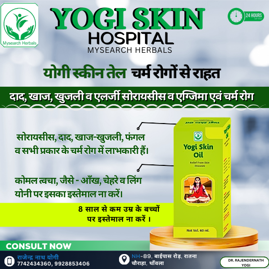 (Yogi Skin Care Oil सोरायसिस, दाद, खाज-खुजली, फंगल और सभी प्रकार के चर्म रोगों में लाभदायक है। प्राकृतिक तत्वों से बना यह तेल त्वचा की समस्याओं को जड़ से ठीक करता है और स्वस्थ, साफ और चमकती त्वचा प्रदान करता है।)