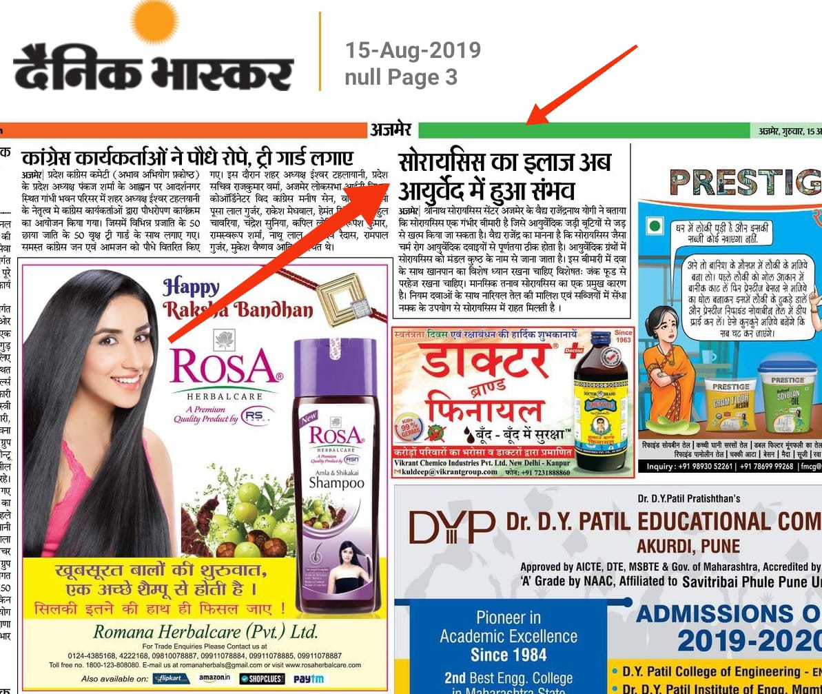 डाँं़ योगी स्किन हॉस्पिटल द्वारा तैयार प्राकृतिक व नेचुरल स्किन अमृत चूर्ण जो की सोरायसिस दाद खाज खुजली वे फंगल जैसी गंभीर बीमारी को पूर्णता ठीक करने में उपयोगी है स्कीनाअमृत चूर्ण 20 साल पुराने से पुराना सोरायसिस को ठीक करने में मदद करता है। इसका सेवन बीएमएस डॉक्टर के देखरेख में करें ज्यादा जानकारी के लिए हमारे कस्टमर केयर नंबर 7742434360 पर संपर्क करें